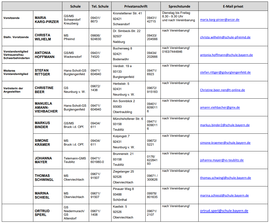 Sprechstunden des Personalrats für die Gesamtheit der GS und MS